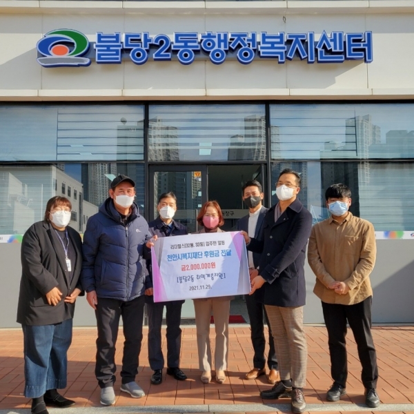 이미영 불당2동장은 “지역주민들의 자발적 사랑으로 모인 성금인 만큼 정말 귀한 곳에 사용하겠다”며 “모두가 행복한 꿈을 그리는 불당2동이 되도록 최선을 다하겠다”고 답했다.