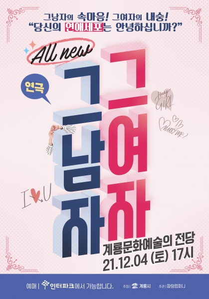 [충청뉴스큐] 계룡시는 오는 12월 4일 저녁 5시 계룡문화예술의전당 대공연장에서 연극 ‘그 남자 그 여자’를 공연한다고 밝혔다.