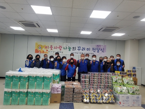 이번 행사는 지난 25일 사랑의 마늘고추장과 들기름 바자회 행사에 판매 수익금을 활용해 진행됐으며 회원 30여명이 참여해 화장지, 계란, 컵라면, 마늘고추장, 도시락김, 물티슈, 라면 등 7개 품목이 담긴 각 5만원 상당의 생필품을 소외계층 및 불우이웃, 독거노인 등 어려운 이웃 60가구에 전달했다.