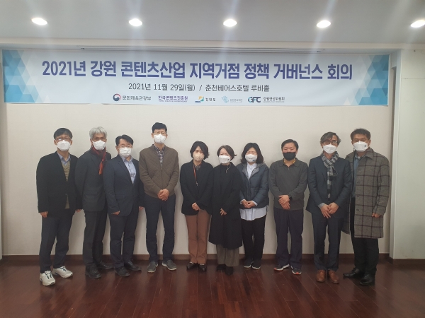 이번 정책 거버넌스 회의에서는 강원 콘텐츠산업 추진현황 및 향후계획 보고와 강원 콘텐츠산업 중장기 발전계획 수립 연구용역 1차 보고가 진행됐으며 회의 결과를 바탕으로 강원 콘텐츠산업 신규사업 및 중장기 발전계획을 수립할 예정이다.