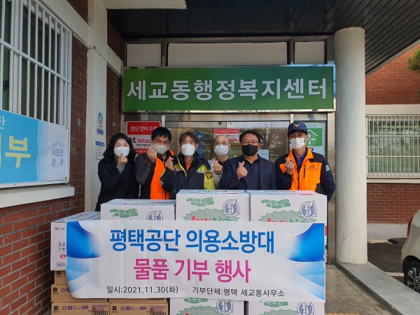 차정우 세교동장은 “소외계층을 위해 지역사회의 나눔문화 실천해주시는 평택공단 의용소방대 대원분들에게 감사드리며 나눔 물품을 저소득층에게 전달해 대원들의 따뜻한 마음을 전하겠다”고 말했다.