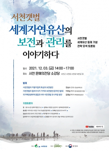 이번 행사는 ‘서천갯벌 세계유산의 보전과 관리를 이야기하다'를 주제로 국립생태원, 국립해양생물자원관, 국내·외 전문가, 군민이 참여해 다양한 의견을 제안할 예정이다.