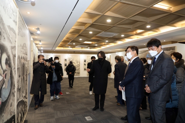 [충청뉴스큐] 수원시의회 조석환 의장이 1일 수원컨벤션센터에서 개최된 ‘글과 수묵, 사진으로 만나는 임을 위한 행진곡, 윤상원’ 전시회에 참석했다.
