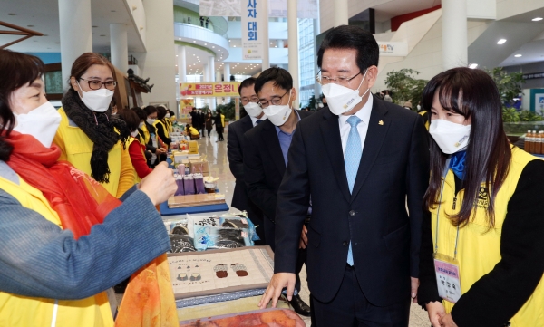 1일 전남도청 윤선도홀. 천연염색 스카프, 가죽공예, 액세서리 등 생활잡화와 미니파프리카, 매실쿠키, 청자컵 등 지역 특산품 100여 품목, 1천여 점을 판매하는 바자회가 열렸다.