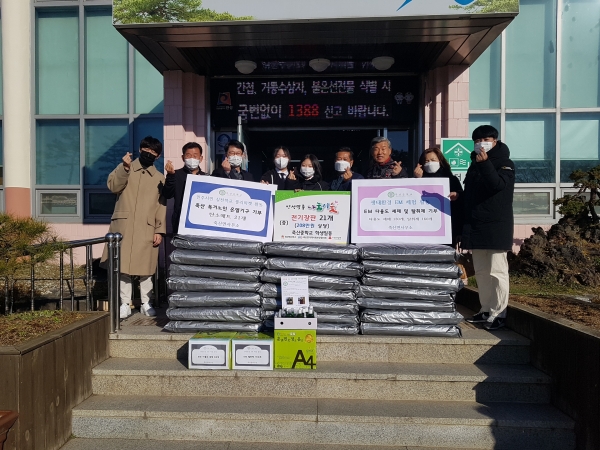 학생들은 또 생태환경 EM 체험 활동으로 만든 친환경 EM 주방세제 130개와 탈취제 160개도 주민들이 사용할 수 있게 전달해 달라며 이날 함께 기부했다.