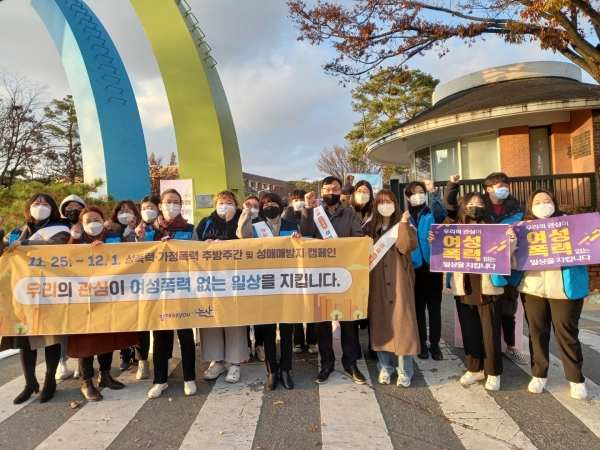 이 캠페인은 성폭력·가정폭력 추방주간을 맞아 성폭력·가정폭력 및 성매매 근절 및 예방, 시민이 안전한 여성친화도시 조성을 위해 시민 공감대를 확산하기 위한 것으로 논산시와 논산YWCA가정폭력상담소, 논산YWCA아름다운 등이 함께했다.