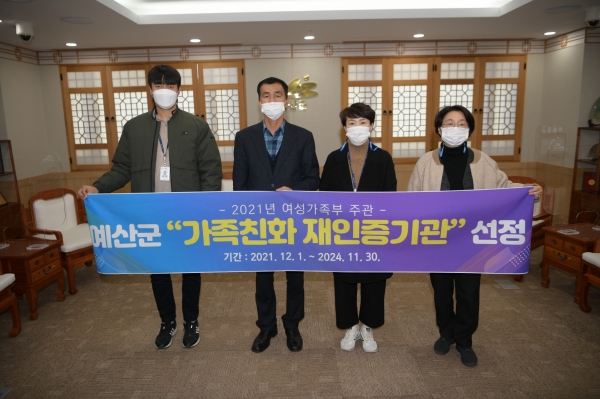 [충청뉴스큐] 예산군은 여성가족부가 주관하는 가족친화 재인증기관에 선정됐다고 6일 밝혔다.