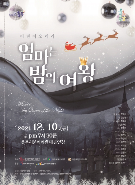 [충청뉴스큐] 충주시는 어린이 오페라‘엄마는 밤의 여왕’을 오는 10일 금요일 저녁 7시 30분, 충주시문화회관에서 선보인다고 밝혔다.