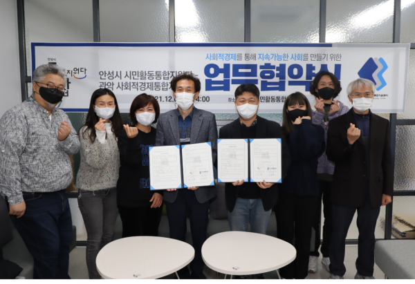 [충청뉴스큐] 안성시 시민활동통합지원단과 관악 사회적경제통합지원센터는 지난 1일 안성시 시민활동통합지원단 사무실에서 다양한 사업 공유 및 지원으로 공동체 교류 활성화를 위한 업무협약을 체결했다.
