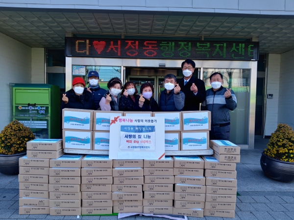 [충청뉴스큐] 평택시 서정동 통장협의회는 6일 임원 및 김재균 경기도의회의원 등이 참석한 가운데 지역 내 어려운 이웃을 위한 사랑의 쌀 나눔으로 따뜻한 겨울나기에 동참했다.