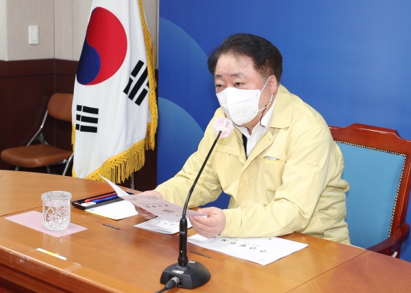 [충청뉴스큐] 한범덕 청주시장은 6일 온라인 영상회의로 열린 주간업무보고에서 감염확률이 높은 어린이들의 외출자제를 강조했다.