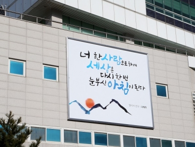문구는 지난 2018년 12월 5일 열린 글판 선정위원회에서 선정됐다. 전문가에게 의뢰해 캘리그라피와 디자인을 가미하고, 선정위원회 심의를 거쳐 이미지를 완성했다.