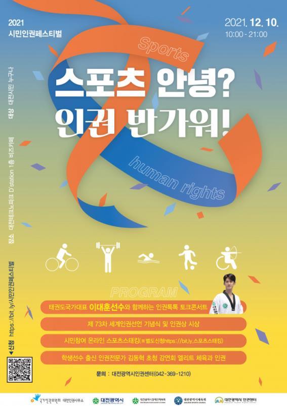 [충청뉴스큐] 대전시는 제73주년 세계인권의 날을 맞이해 스포츠와 인권을 주제로 한 ‘시민인권페스티벌’을 오는 12월 10일 대전테크노파크 1층 이노비즈 카페에서 개최한다고 밝혔다.
