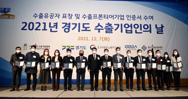 [충청뉴스큐] 경기도는 7일 라마다 프라자 수원 호텔에서 열린 ‘2021 경기도 수출기업인의 날 행사’에서 코로나 시대에 지혜를 모아 수출성과 창출과 지역경제 활성화에 기여한 도내 수출기업 14개사를 표창했다.