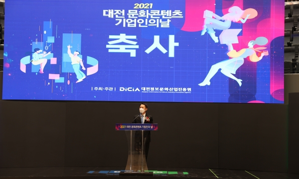 [충청뉴스큐] 대전광역시의회 권중순 의장이 7일 대전 이스포츠경기장 드림아레나에서 ‘2021년 대전 문화콘텐츠 기업인의 날’행사에 참석했다.
