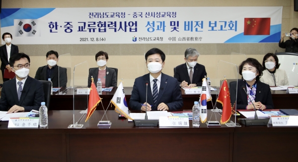 전라남도교육청은 8일 여수에 있는 전라남도국제교육원에서 중국 산시성 교육청과 그동안의 한·중 교육교류협력 사업 성과와 새로운 비전을 나누는 온라인 보고회를 개최했다.