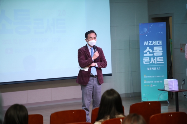 MZ세대 등 50여명이 참석한 가운데 진행된 이번 콘서트는 ‘결혼혁명 2.0, 길들여짐은 의심하라’라는 주제로 사회학자 오창호 강사의 강연과 토크콘서트 형식으로 코로나 방역수칙을 준수하며 진행됐다.