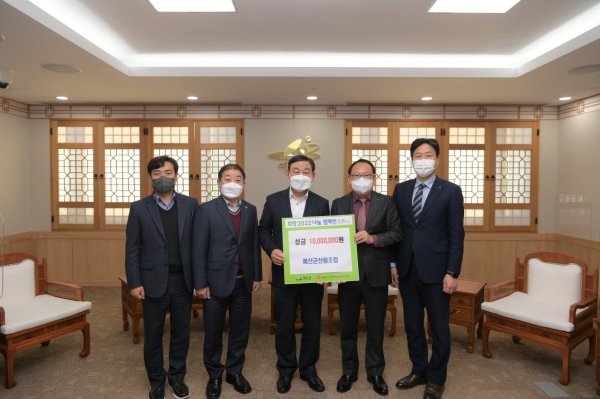 [충청뉴스큐] 예산군산림조합은 코로나19 장기화와 경기침체로 어려움을 겪는 취약계층 지원을 위해 지난 8일 희망2022 이웃돕기성금 1000만원을 예산군에 기탁했다.