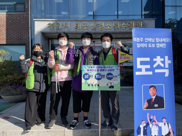 [충청뉴스큐] 천안시태조산청소년수련관은 천성중학교 학생들과 진행했던 이봉주 선수 응원 릴레이 도보 캠페인을 성공적으로 마치고 해단식을 지난 8일 진행했다고 밝혔다.
