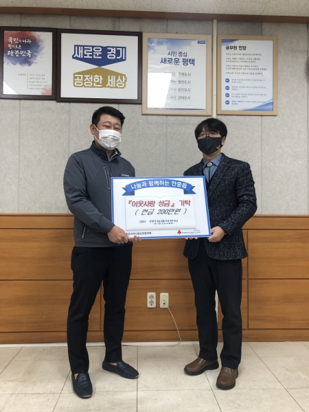 [충청뉴스큐] 평택시 안중읍 금곡리 소재 ㈜삼흥이엔티에서 지난 9일 연말연시 소외계층을 위한 성금 200만원을 안중읍행정복지센터에 기탁했다.
