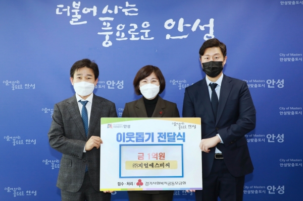 [충청뉴스큐] ㈜지얼에스비씨는 지난 9일 안성시를 방문해 어려운 이웃을 위해 사용해 달라며 성금 1억원을 기탁했다.