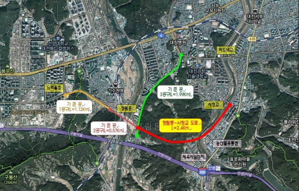 정림중~사정교간 도로개설사업은 2026년까지 총사업비 약 906억원을 투입해 터널, 교량 등을 건설해 서구 정림동에서 중구 사정동까지 최단거리로 연결하는 사업이다.