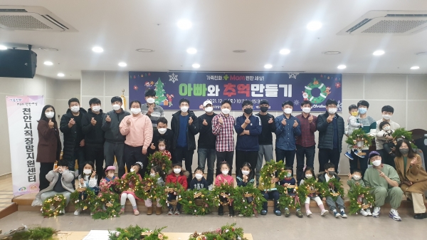 [충청뉴스큐] 천안시직장맘지원센터는 지난 11일 천안축구센터에서 아빠와 함께하는 ‘크리스마스 맞이 우리집 꾸미기’ 프로그램을 진행했다고 밝혔다.