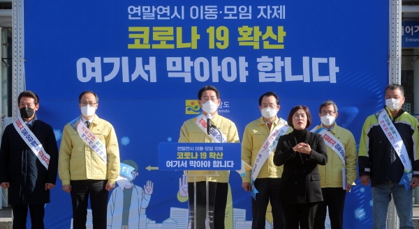 [충청뉴스큐] 전라남도는 13일 연말연시 이동 및 모임 자제를 호소하는 방역 캠페인을 개최하고 도민의 적극적인 동참을 호소했다.