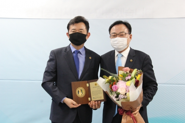 [충청뉴스큐] 경기도의회 건설교통위원회 김종배 도의원은 14일 경기도의회 교섭단체 더불어민주당이 주최하는 ‘2021 올해의 의원상’을 수상했다.