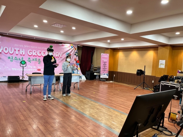 [충청뉴스큐] 평택시청소년재단 / 안중청소년문화의집은 지난 11일 안중청소년문화의집에서 2021년 평택시 서부지역 청소년 어울림마당 ‘Youth Green Day – 청소년, 축제를 만나다’를 주제로 행사를 개최했다.