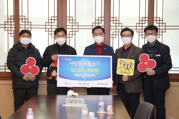 평택시 청북읍 고잔리에 위치한 세종스틸환경은 2006년 설립이후 지역주민과 상생하며 시설을 청결하게 운영하고 있는 폐기물 재활용업의 모범기업으로 지역사회에 이웃사랑을 실천하겠다는 약속을 잊지 않고 2017년부터 매년 이웃돕기 성금을 전달하며 나눔에 동참하고 있다.