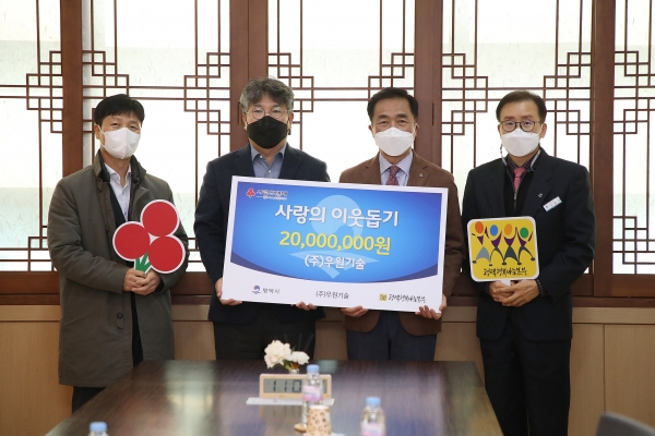 [충청뉴스큐] ㈜우원기술은 지난 7일 평택시청 대외협력실에서 코로나19로 인한 지역사회 어려움을 나누고자 희망 2022 나눔캠페인에 성금 2,000만원을 기탁했다.