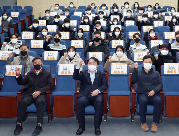 [충청뉴스큐] 청주시는 14일 도시재생지원센터 대공연장에서 청주시청 직장운동경기부 선수단 76명이 참석한 가운데 ‘2021년도 하반기 직장운동경기부 스포츠폭력 및 성폭력 예방 교육’을 실시했다.