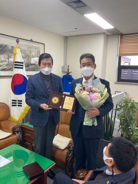 이날 도시환경위원회 장동일 위원장은 행정사무감사에서 발군의 능력을 보인 김태형 의원에게 우수의원 표창장을 수여했다.