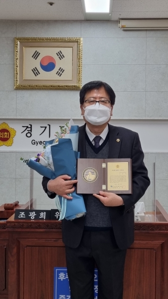 [충청뉴스큐] 경기도의회 건설교통위원회 조광희 도의원은 14일 경기도의회 교섭단체 더불어민주당이 주최하는 ‘2021 올해의 의원상’을 수상했다.