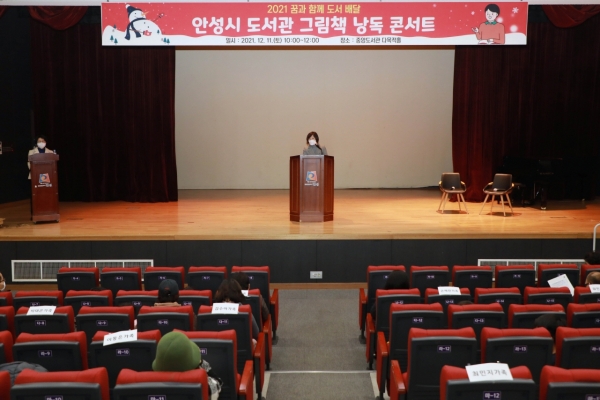 [충청뉴스큐] 안성시는 지난 11일 중앙도서관에서 2021년 ‘꿈과 함께 도서 배달’사업을 마무리하며 참여 아동과 부모님이 함께하는 독서문화프로그램 ‘그림책 낭독 콘서트’를 열었다.