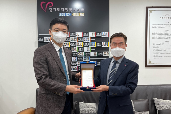 경기도주식회사는 해당 기관을 찾아 착착착 상품 구매로 착한 소비에 동참한 데 감사함을 표하고 감사패를 직접 수여했다.