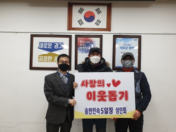 김태근 송북동장은 “매년 꾸준히 이웃사랑을 베풀어 주시는 송탄민속5일장 상인회 회원분들에게 감사드리며 코로나19로 어렵고 힘든 상황에 있는 대상자들에게 잘 전달하겠다”고 답했다.