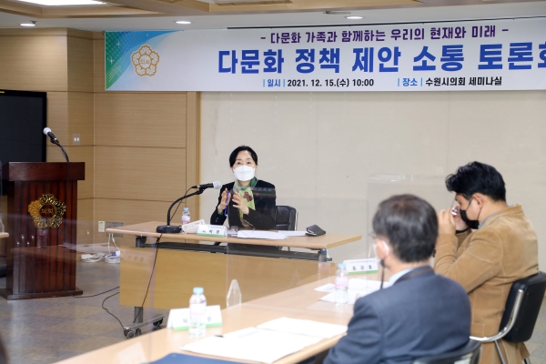[충청뉴스큐] 수원시의회 이미경 의원이 15일 시의회 세미나실에서 다문화 정책의 발전 방향을 모색하기 위한 소통 토론회를 개최했다.