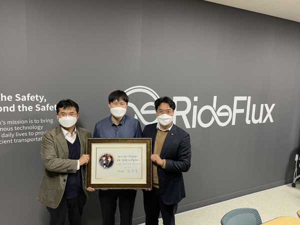 김부겸 국무총리도 제주 자율주행차 운영 서비스 개시를 격려하는 친필 메시지를 ㈜라이드플럭스에 전달했다.