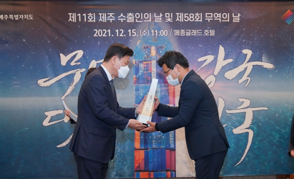 이와 함께 “제주도정은 수출의 역군이자 제주경제 발전의 주역인 제주기업 및 기업인 여러분과 함께 제주의 경제영토를 넓혀 나가는 데 최선을 다하겠다”고 덧붙였다.