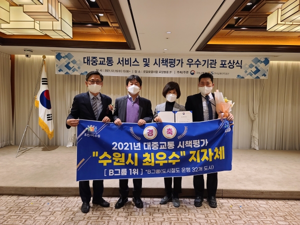 [충청뉴스큐] 수원시가 국토교통부가 주최하고 한국교통안전공단이 주관하는 ‘대중교통 시책평가’에서 4회 연속 최우수기관으로 선정됐다.