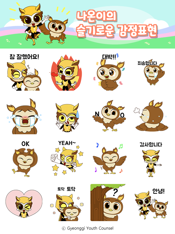 나온이는 ‘힘이 들 때 언제든 나에게 오세요’라는 의미를 담은 부엉이 모양의 캐릭터다.