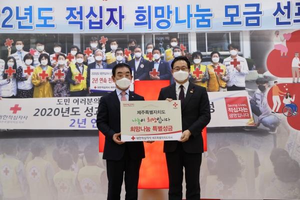 [충청뉴스큐] 제주특별자치도는 최근 대한적십자사 제주특별자치도지사를 방문해 소외된 이웃을 돕기 위한 희망나눔 특별성금 금일봉을 전달했다고 16일 밝혔다.