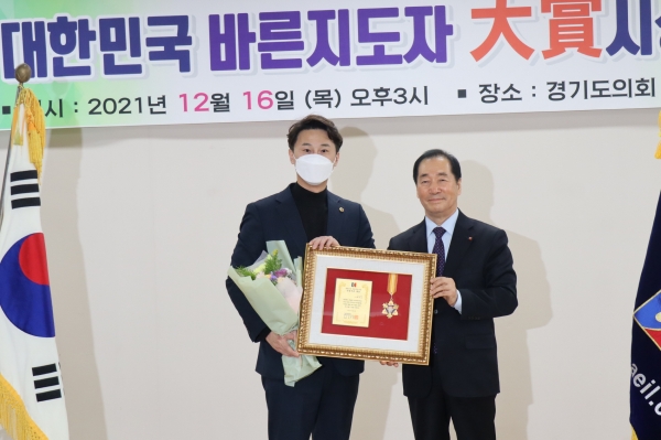 이날 시상식은 경기도의회 소회의실에서 간소하게 개최됐으며 황대호 의원은 전국 최초로 ‘경기도교육청 군사기지 및 군사시설 주변 소음피해학교 지원 조례’를 제정해 도내 군사기지 및 시설에서 발생하는 극심한 소음으로 정상적인 수업의 기회를 잃고 정서불안, 건강상 피해 등을 받고 있는 소음피해학교 학생과 교직원들의 복지 및 학습권 보장 지원을 위한 제도적 근거를 마련했다는 평가를 받았다.