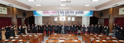 [충청뉴스큐] 광주시교육청이 3일 시교육청 2층 대강당에서 장휘국 교육감을 비롯한 전 교직원이 참석한 가운데 시무식을 겸한 청렴실천 다짐으로 기해년 새해 첫 업무를 시작했다.