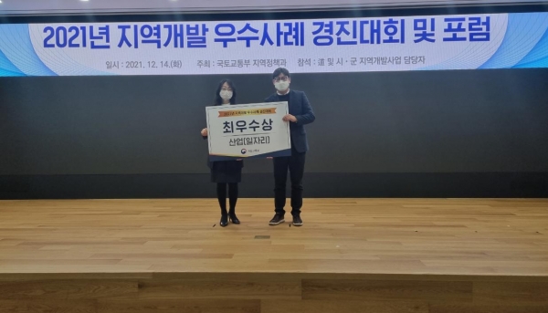 [충청뉴스큐] 예산군은 국토연구원에서 개최한 ‘2021 지자체 지역개발사업 우수사례 경연대회’에서 최우수상을 수상하는 쾌거를 거뒀다고 17일 밝혔다.