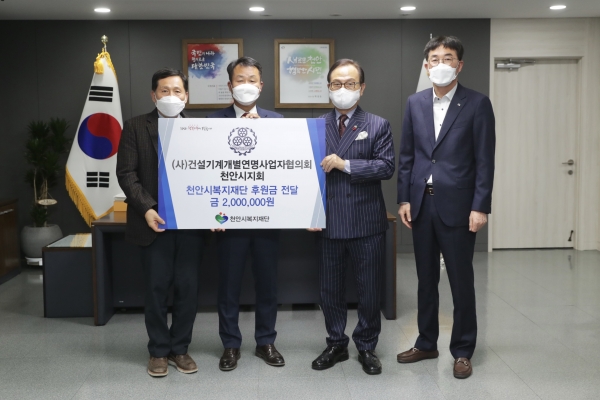 [충청뉴스큐] 건설기계개별연명자협의회 천안지회 회원들이 지난 16일 연말연시 천안지역의 어려운 이웃을 돕기 위해 성금 200만원을 천안시에 전달했다.