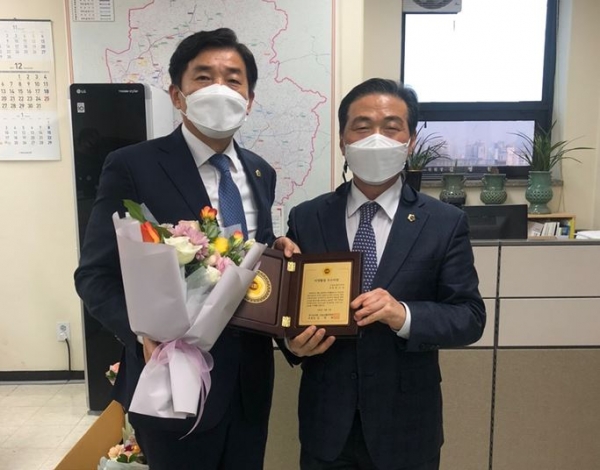 [충청뉴스큐] 경기도의회 건설교통위원회 엄교섭 도의원은 17일 경기도의회 건설교통위원회로부터 올 한해 도내 건설교통분야 발전에 이바지하고 2021년도 행정사무감사에서 적극적이고 창의적인 활동을 통해 도민의 알권리를 충족시켜 준 공로를 인정받아 ‘건설교통위원회 2021 의정활동 우수의원상’을 수상했다.
