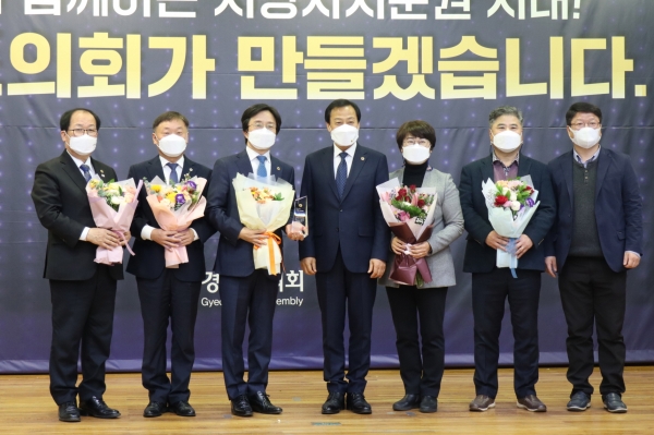 [충청뉴스큐] 경기도의회 교육행정위원회 배수문 의원이 17일 경기도의회 대회의실에서 개최된 종무식에서 ‘제11회 대한민국시도의회의장협의회 우수의정대상’을 수상했다.